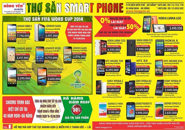 Cuộc đi săn vẫn chưa kết thúc, mùa săn SmartPhone đã trở lại, Bạn còn chờ gì nữa !?!? Hãy trở thành thợ săn SmartPhone đỉnh cao cùng Hồng Yến mobile nào!!! Bạn đã từng săn tìm những chiếc điện thoại SmartPhone mà chưa được như ý ... Nếu đúng như vậy thì hãy cùng với chúng tôi, cùng với Hồng Yến... Trở thành những thợ săn SmartPhone đỉnh cao. Hãy nhanh chân lên!!! Hãy nhanh chân lên nữa nào! Đừng bỏ lỡ cơ hội... Để tạo điều kiện thuận lợi cho các săn thủ dễ dàng đi săn các SmartPhone Hồng Yến đã giảm giá rất nhiều sản phẩm trong đó có nhiều sản phẩm SmartPhone giảm giá lên đến 50% giá trị sản phẩm. Không chỉ dừng lại ở Điện Thoại, Tablet chúng tôi còn giảm giá cho phụ kiện lên đến 30% giá trị. Bạn còn chờ gì nữa! Hãy nhanh chân lên nào các săn thủ ơi... Hãy trở thành thợ săn đỉnh cao đi nào.